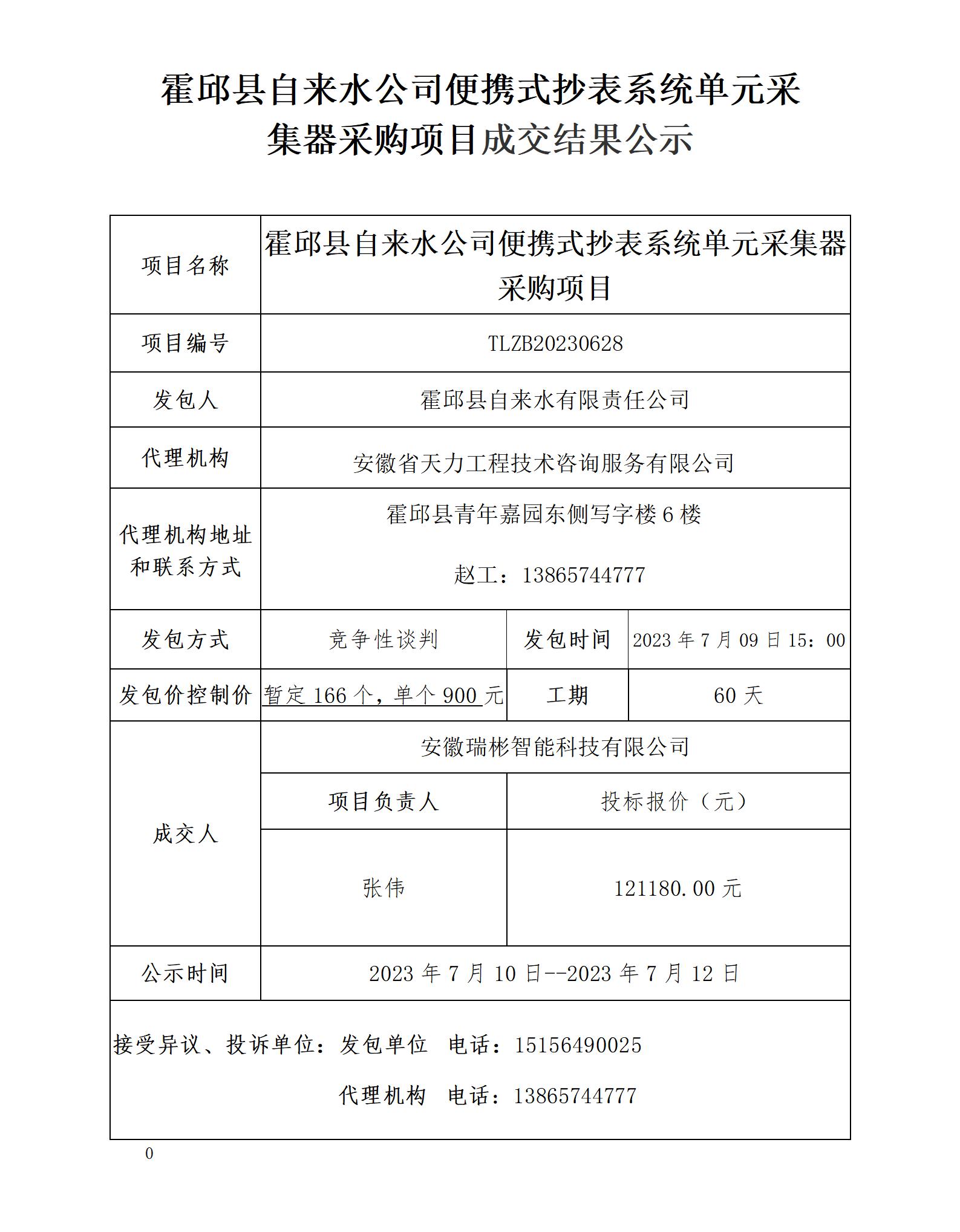 霍邱縣自來水公司便攜式抄表系統(tǒng)單元采集器采購項目成交結果公示