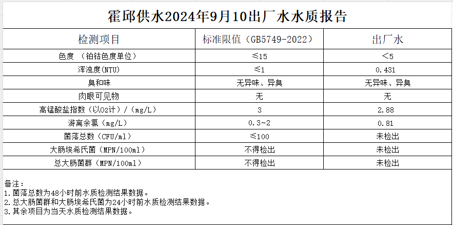 2024年9月10日出廠水水質(zhì)報(bào)告