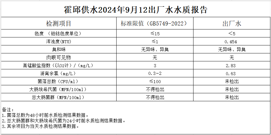 2024年9月12日出廠水水質(zhì)報(bào)告