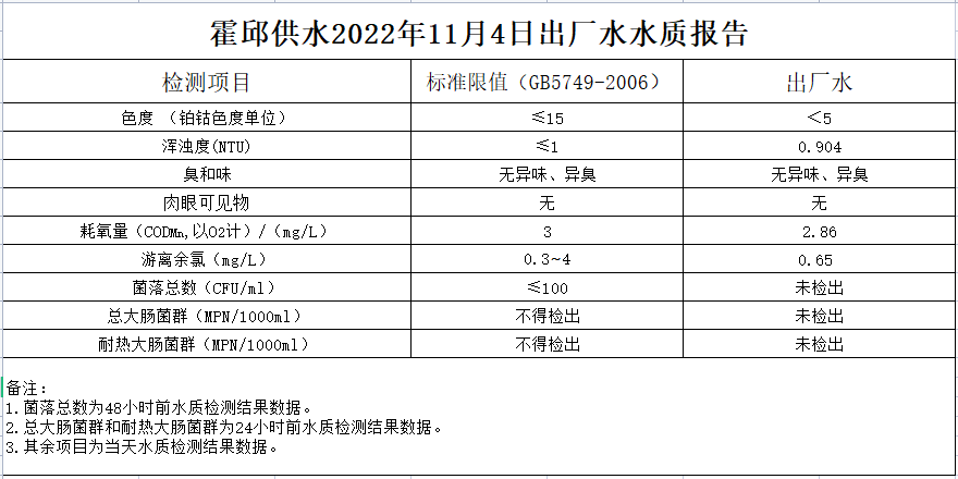 您現(xiàn)在的位置: 首頁 - 通知公告 - 水質(zhì)公告 - 出廠水水質(zhì)(8項) - 2022年11月4日出廠水水...