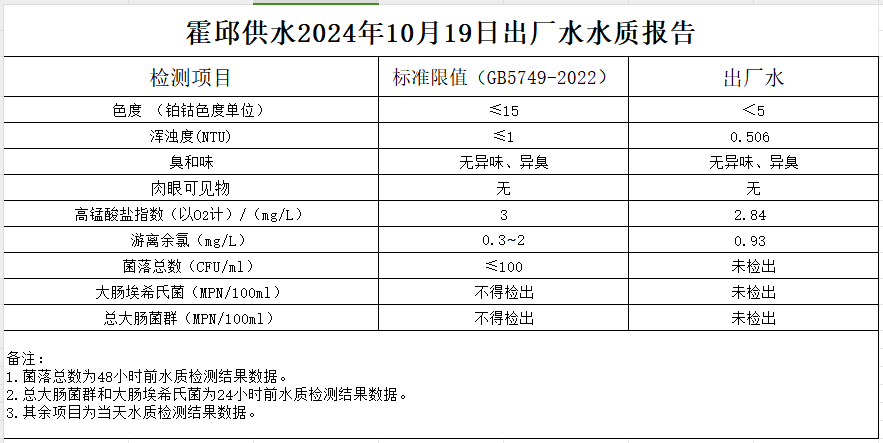 您現(xiàn)在的位置: 首頁 - 通知公告 - 水質(zhì)公告 - 出廠水水質(zhì)(8項) - 2024年10月19日出廠水...