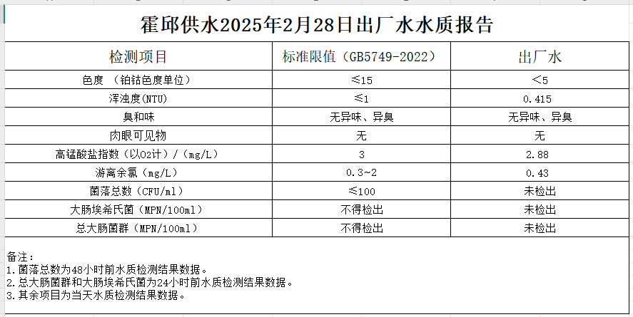 2025年2月28日出廠水水質(zhì)報(bào)告