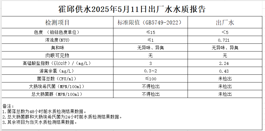 您現(xiàn)在的位置: 首頁 - 通知公告 - 水質(zhì)公告 - 出廠水水質(zhì)(8項) - 2025年5月11日出廠水水...