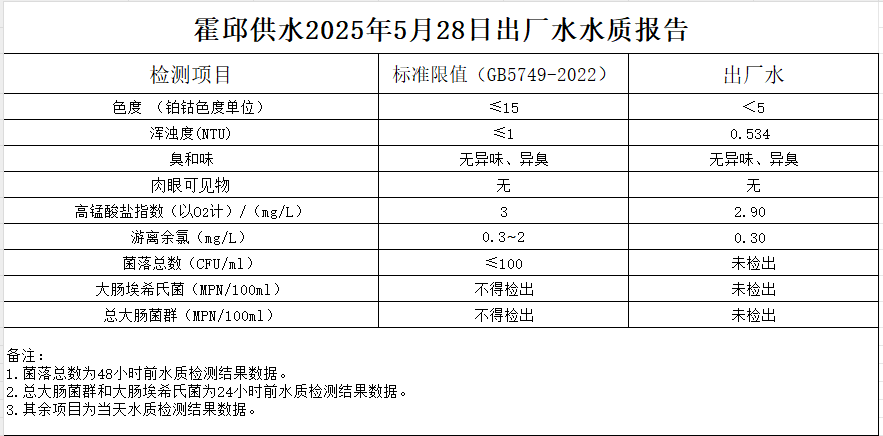 2025年5月28日出廠水水質(zhì)報告