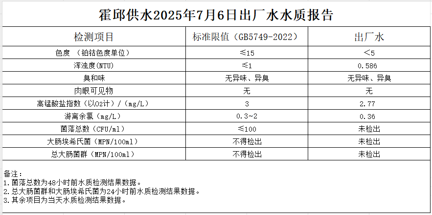 2025年7月6日出廠水水質(zhì)報(bào)告