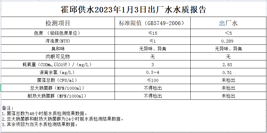 2023年1月3日出廠水水質(zhì)報(bào)告