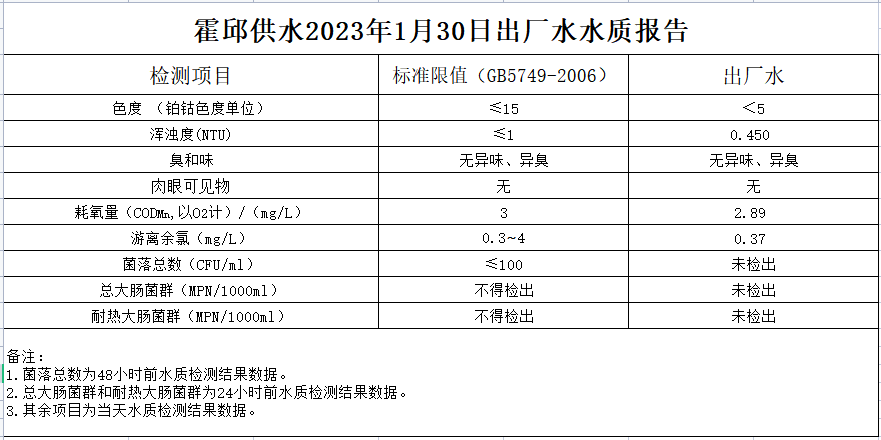 2023年1月30日出廠水水質(zhì)報(bào)告