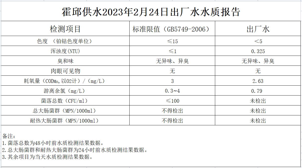您現(xiàn)在的位置: 首頁 - 通知公告 - 水質(zhì)公告 - 出廠水水質(zhì)(8項) - 2023年2月24日出廠水水...