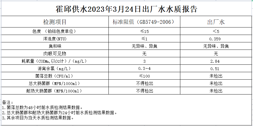 您現(xiàn)在的位置: 首頁 - 通知公告 - 水質(zhì)公告 - 出廠水水質(zhì)(8項) - 2023年3月24日出廠水水...