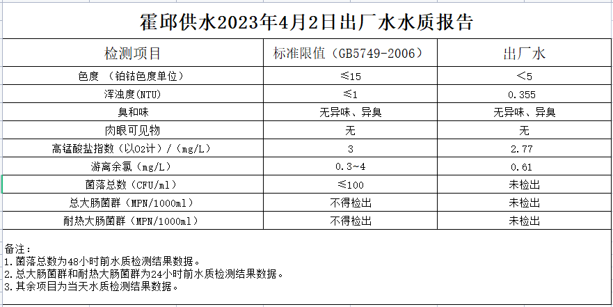 您現(xiàn)在的位置: 首頁 - 通知公告 - 水質(zhì)公告 - 出廠水水質(zhì)(8項) - 2023年4月2日出廠水水...