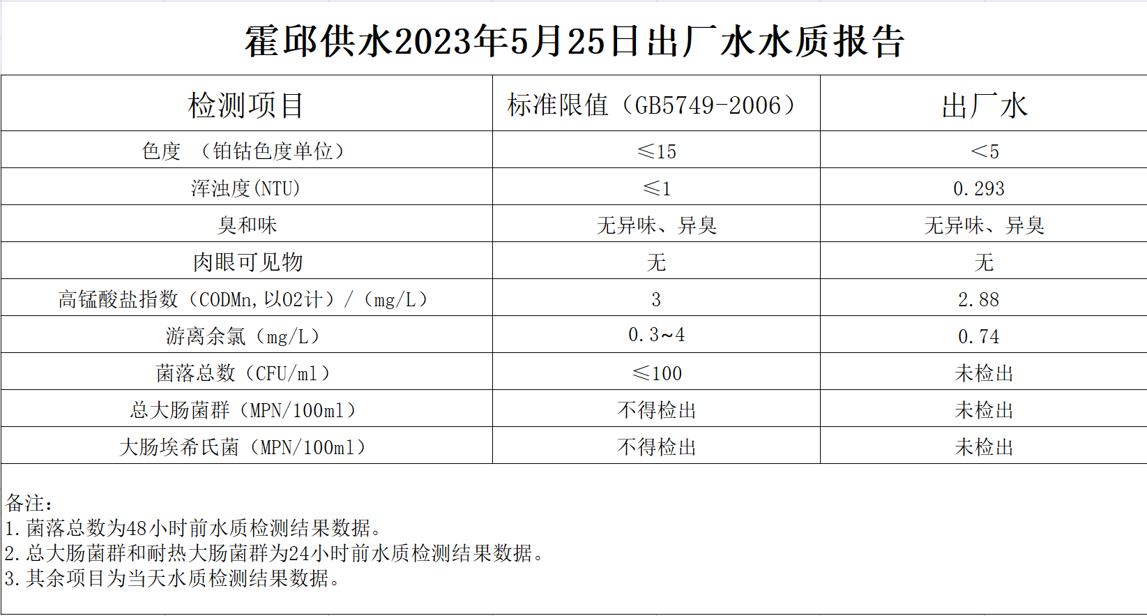 您現(xiàn)在的位置: 首頁 - 通知公告 - 水質(zhì)公告 - 出廠水水質(zhì)(8項) - 2023年5月25日出廠水水...