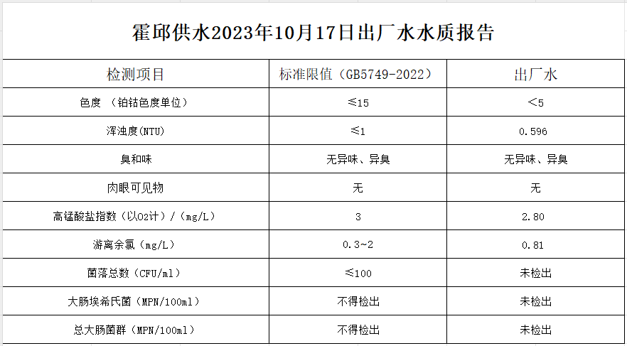 您現(xiàn)在的位置: 首頁 - 通知公告 - 水質(zhì)公告 - 出廠水水質(zhì)(8項) - 2023年10月17日出廠水...