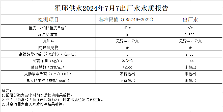 2024年7月7日出廠水水質(zhì)報(bào)告