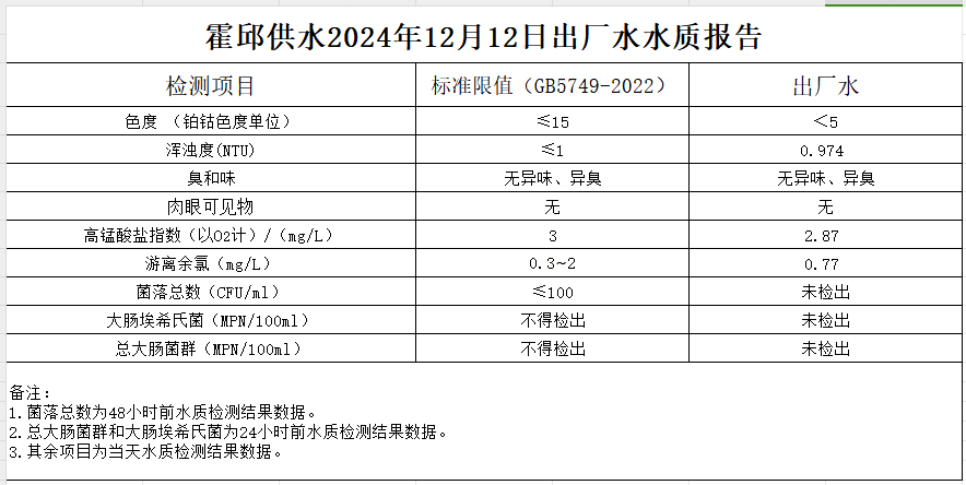 您現(xiàn)在的位置: 首頁 - 通知公告 - 水質(zhì)公告 - 出廠水水質(zhì)(8項) - 2024年12月12日出廠水...